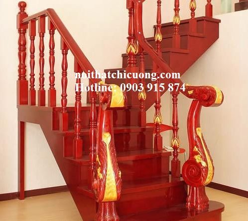 Càu Thang Đẹp Cho nHà Phố Bằng Gỗ Gỏ Đỏ- 047