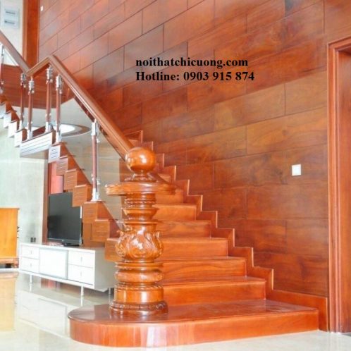 Thang Đẹp Cho Nhà Phố Bằng Gỗ Gỏ Đỏ Sang Trọng -059