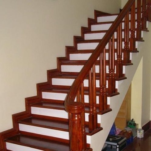 Cầu Thang Cho Nhà Phố Đẹp Bằng Gỗ Gõ Đỏ -006