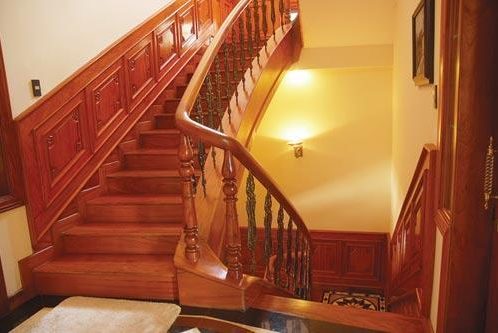Cầu Thang Đẹp Cho Nhà Phố Bằng Gỗ Gỏ Đỏ -041