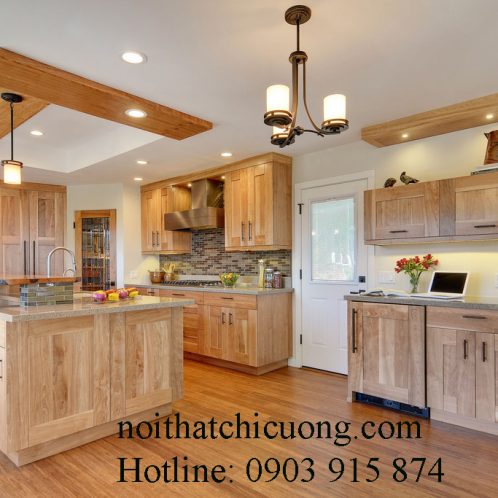 Tủ Bếp Có Bàn Đảo Cổ Điển – Gỗ Sồi Đẹp -018
