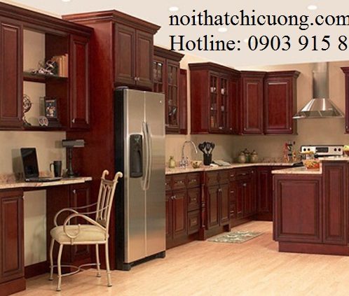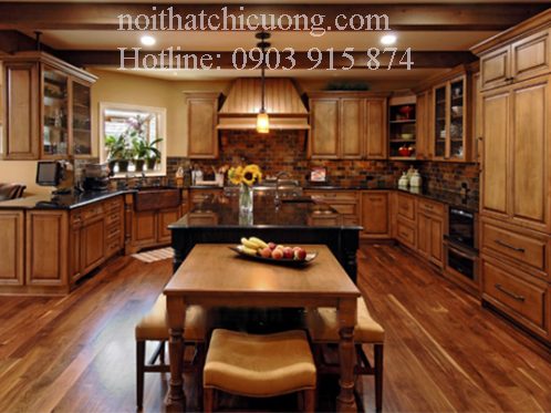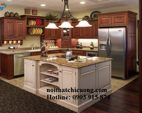 Tủ Bếp Có Bàn Đảo Cổ Điển Gỗ Căm Xe -025