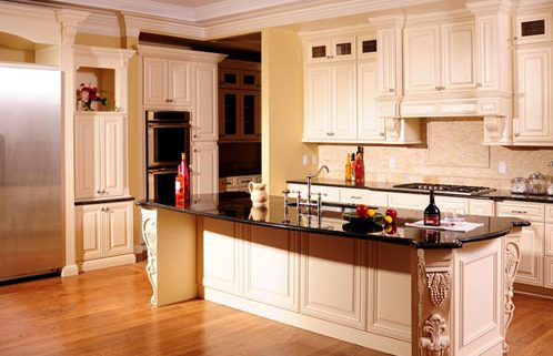 Nội Thất Tủ Bếp Có Bàn Đảo Cổ Điển – Gỗ Cẩm Lai Sơn Trắng -012