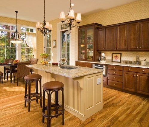 Tủ Bếp Có Bàn Đảo Cổ Điển Gỗ Huỳnh Đàng -006