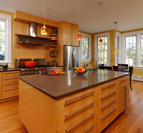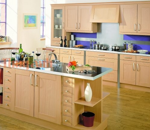 Tủ Bếp Có Bàn Đảo Hiện Đại – Gỗ Sồi Tự Nhiên -015