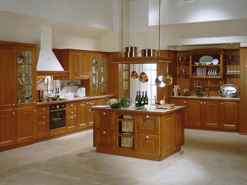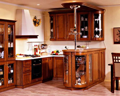 Tủ Bếp Có Bàn Đảo Cổ Điển – Gỗ Cao Su -003