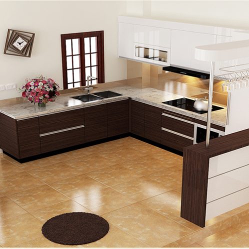 Tủ Bếp Dạng Chữ U Cho Nhà Phố – Gỗ Căm Xe Hiện Đại -034