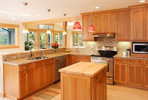 Tủ Bếp Có Bàn Đảo Cho Nhà Phố – Gỗ Cao Su -004