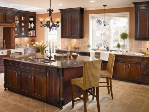 Tủ Bếp Có Bàn Đảo Đẹp Cổ Điển – Gỗ Căm Xe -014