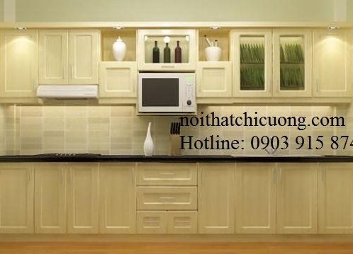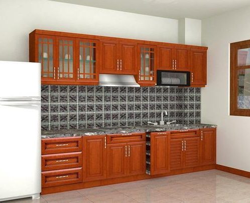 Tủ Bếp Dạng Chữ I Cho Nhà Phố – Gỗ Xoan Đào Cao Cấp -032