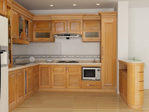 Tủ Bếp Dạng Chữ L Đẹp Bằng Gỗ Cao Su Tự Nhiên -009