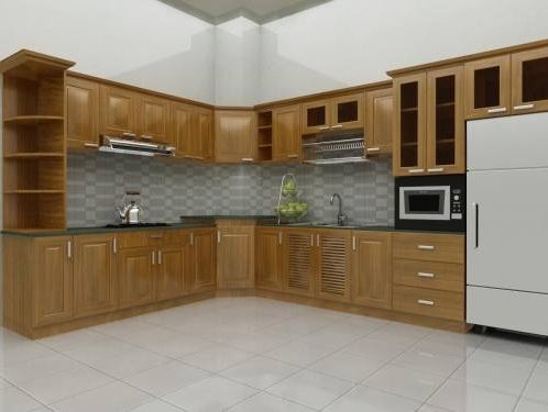 Tủ Bếp Dạng Chữ L Cho Phòng Bếp Gia Đình – Gỗ Cao Su Đẹp- 052