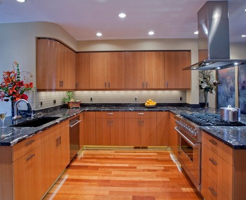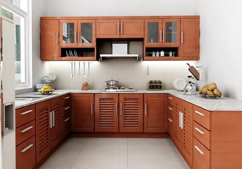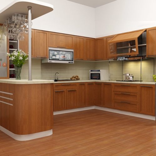Tủ Bếp Dạng Chữ U Đơn Giản – Gỗ Căm Xe -013