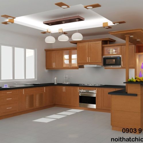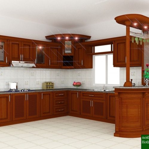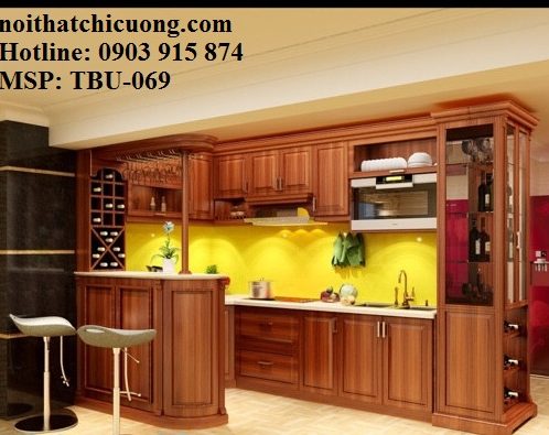 Tủ Bếp Dạng Chữ U Nhà Phố Gỗ Căm Xe Đẹp -012