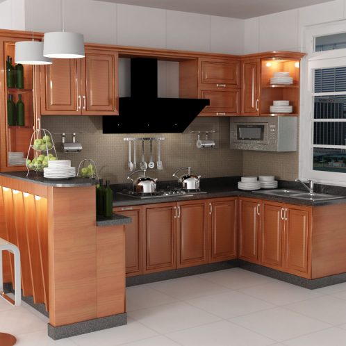 Tủ Bếp Dạng Chữ U Cho Nhà Phố Hiện Đại – Gỗ Gỏ Đỏ -050