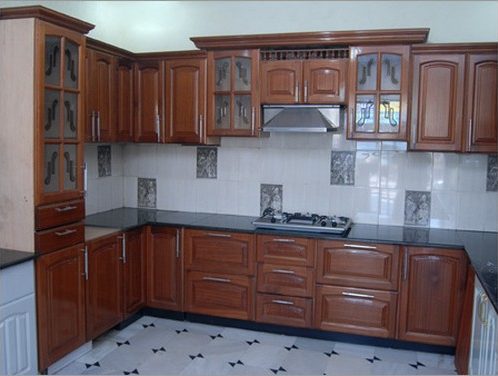 Tủ Bếp Dạng Chữ U Nhà Phố Gỗ Gỏ Đỏ Đẹp -025