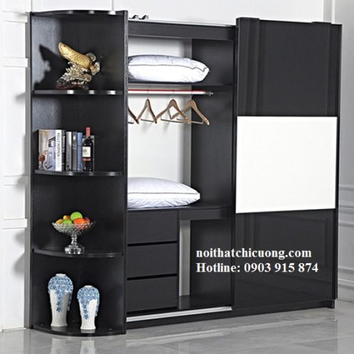 Nội Thất Phòng Khách – Tủ Sách Gỗ Sơn Đen – 013