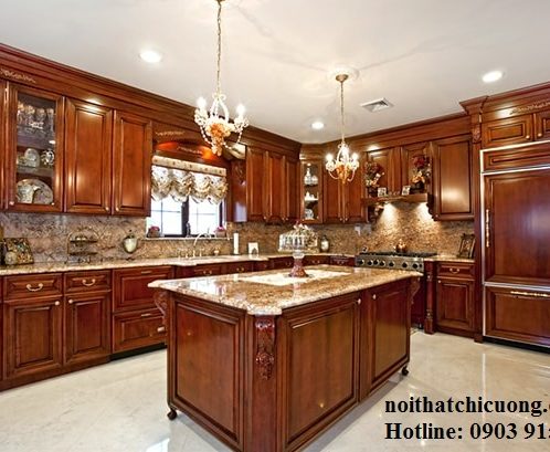 Bộ Bếp Cổ Điển Châu Âu – Gỗ Căm Xe Đẹp -002