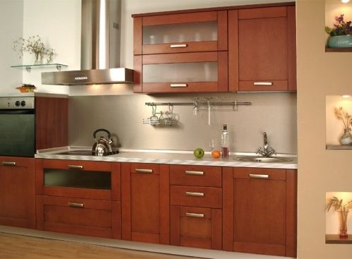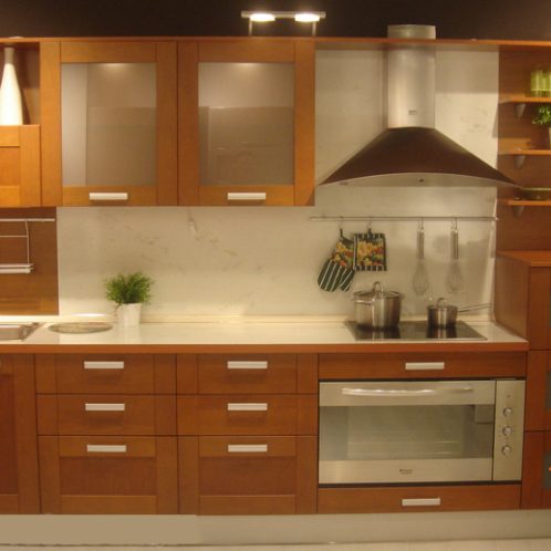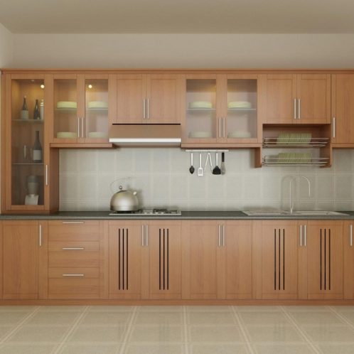 Tủ Bếp Dạng Chữ I Gỗ Cao Su Đẹp Tự Nhiên -001