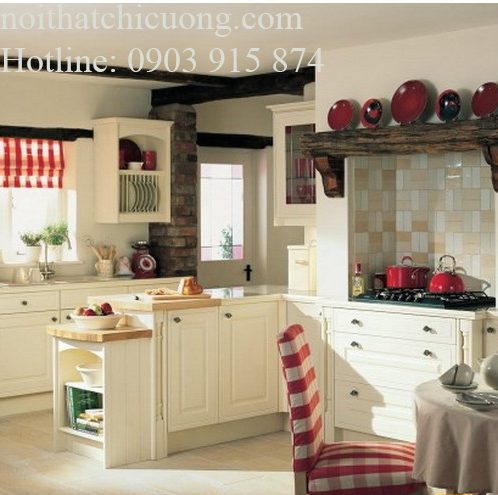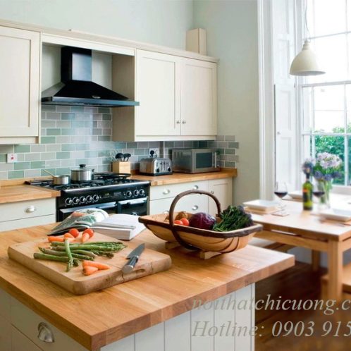 Tủ Bếp Dạng Chữ I Cổ Điển Gỗ Cao Su -003
