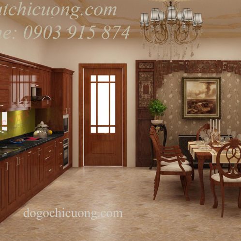 Tủ Bếp Dạng Chữ I Cổ Điển Gỗ Huỳnh Đàng -006