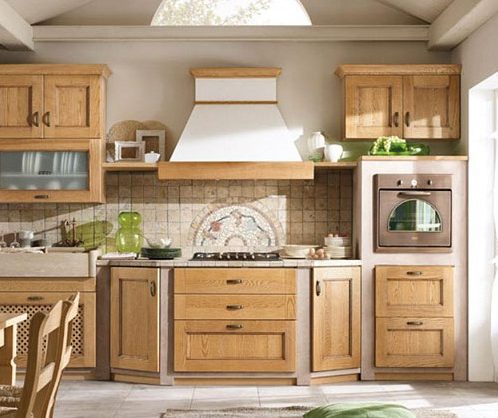 Tủ Bếp Dạng Chữ I Cổ Điển Bằng Gỗ Sồi -019