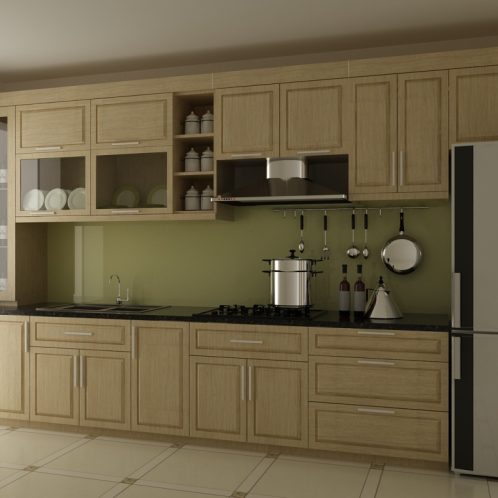 Tủ Bếp Dạng Chữ I – Gỗ Sồi Hiện Đại -017