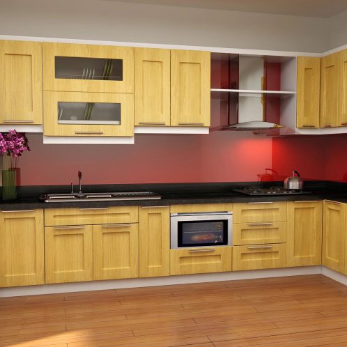 Tủ Bếp Dạng Chữ L Cho Nhà Phố – Gỗ Sồi Tự Nhiên -049