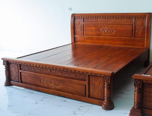 Giường Ngủ Bằng Gỗ Gỏ Đỏ Đẹp Tự Nhiên -044