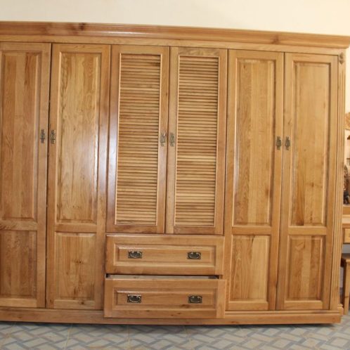 Tủ Quần Áo Cánh Mở Cổ Điển Bằng Gỗ Sồi -015